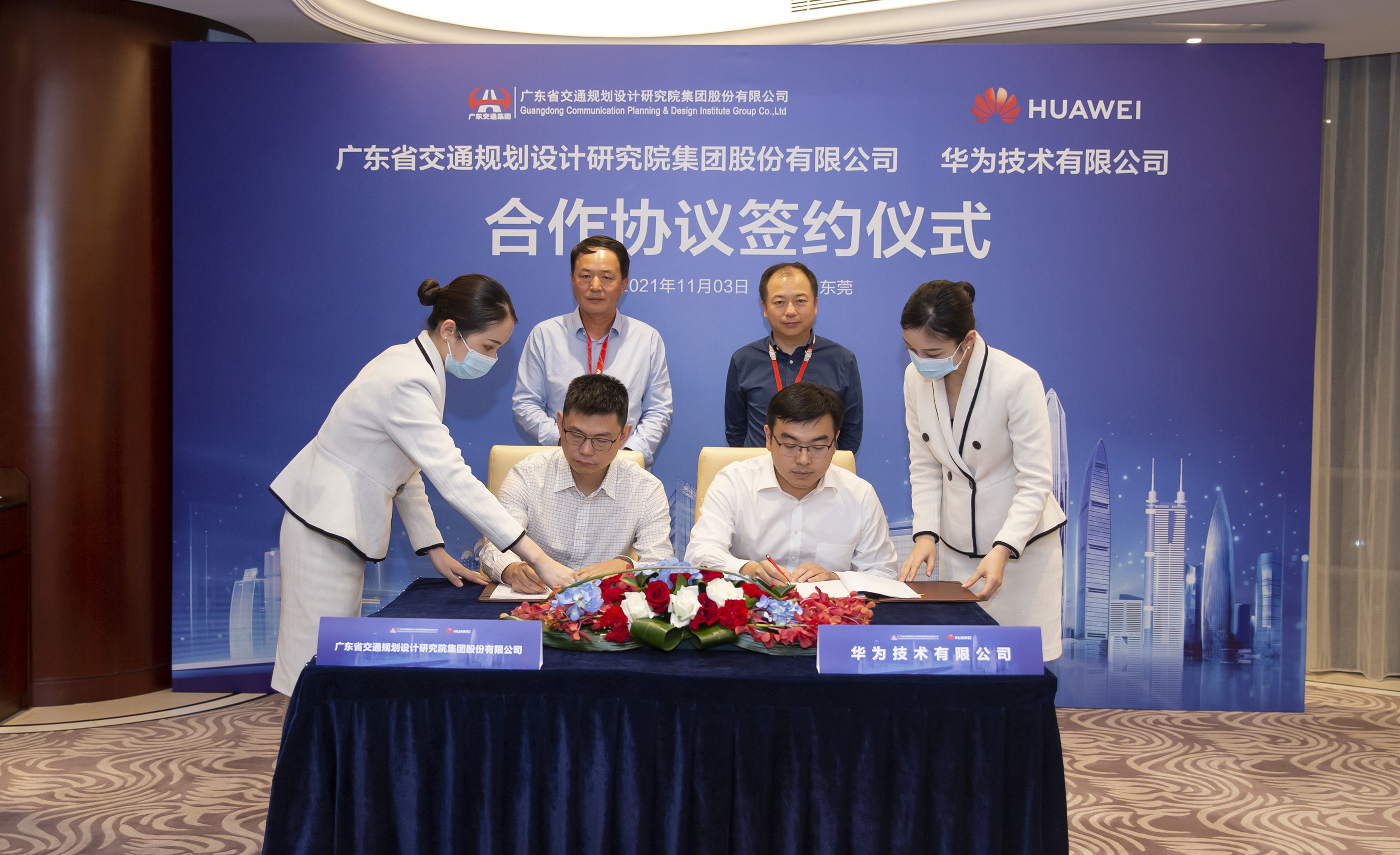2021年11月3日,为加强数字与智慧领域合作,共同助力“交通强国”建设,我公司与华为技术有限公司在华为南方基地隆重举行了战略合作协议签订仪式。公司党委书记、董事长李江山带队赴华为公司进行了签约和参观交流。公司副总经理刘桂红、公司总经理助理兼规划与智慧交通设计院院长汪超、规划与智慧交通设计院副院长郭月利、研发管理部副主任李红中以及“数字交通”创新平台两中心技术团队参加了本次活动。