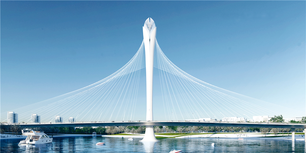 唐主席一行先后来到东莞市滨海湾大桥项目现场和工程项目部,了解滨海湾大桥的项目概况、设计思路和项目特点。东莞市滨海湾大桥位于滨海湾新区规划内湾和滨海景观长廊的重要节点位置,是新区标志性景观桥梁。滨海湾大桥主桥跨径60+200+200+60m=520m,桥宽60m,双向八车道,是目前国内跨径最大、宽度最宽的空间扭索面斜拉桥;结合景观造型及受力需求,中下塔柱采用钢壳混凝土组合塔,上塔柱采用钢塔,形成真正意义上钢-钢壳混凝土混合塔,为国际上首次应用。项目还采用了BIM正向设计,实现碰撞分析、节点优化、有限元分析、3D打印实验分析等丰富的BIM技术应用场景。滨海湾大桥设计方案“丝路明灯,玉兰花开”灵感来源于东莞市花玉兰花,建筑景观效果与地域文化高度融合,极具标识性,曾荣获“滨海湾大桥方案设计国际竞赛”第一名。