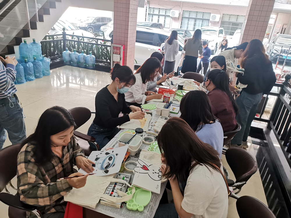 为陶冶职工艺术情操,公司工会、员工书画摄影协会联合开展了布艺包彩绘DIY活动。大家在工作人员的引导下,纷纷寻找到了自己想要描摹的图案,用画笔在布艺包上兴致勃勃地绘制创作。随着一款款精致漂亮的布艺包彩绘顺利完成,大家开心地举起自己的作品拍照,一起分享成果。