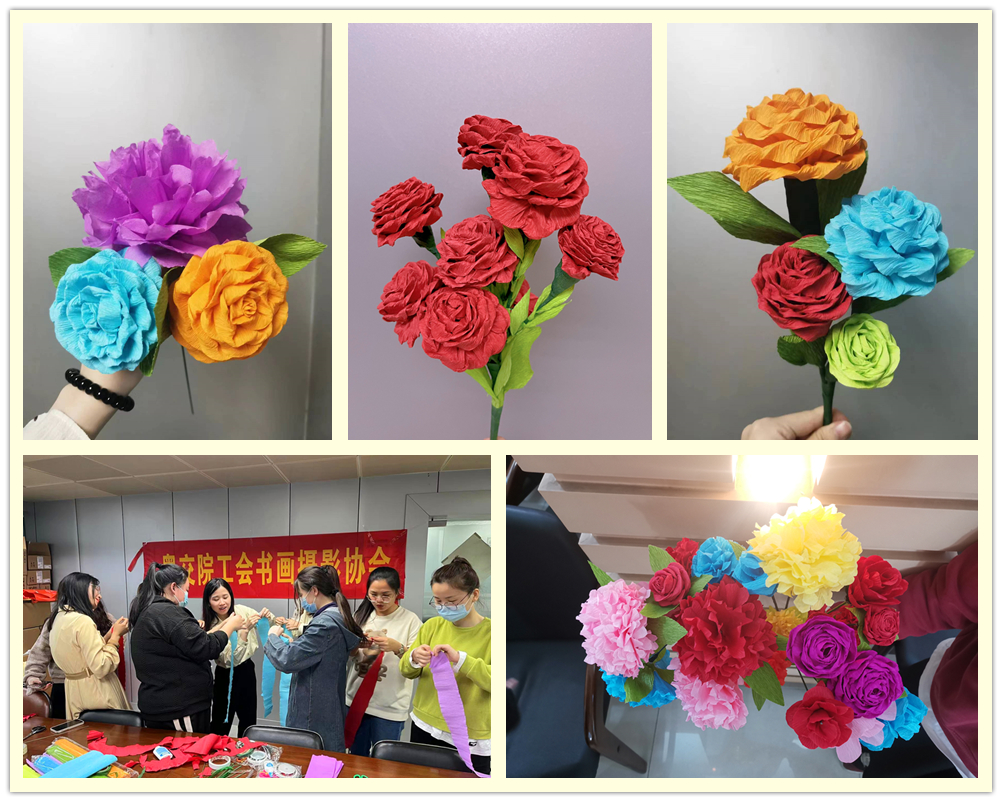 为陶冶女职工的艺术情操,员工书画摄影协会组织开展了手工纸艺活动。在协会工作人员的指导下,参与活动的女职工们按照折纸步骤,动手实践,反复揣摩,逐渐掌握了基本技巧,经过大家一个多小时的不懈努力与互帮互助,一朵朵精美的纸艺花展现在大家面前,正可谓:人面“纸”花相映红。