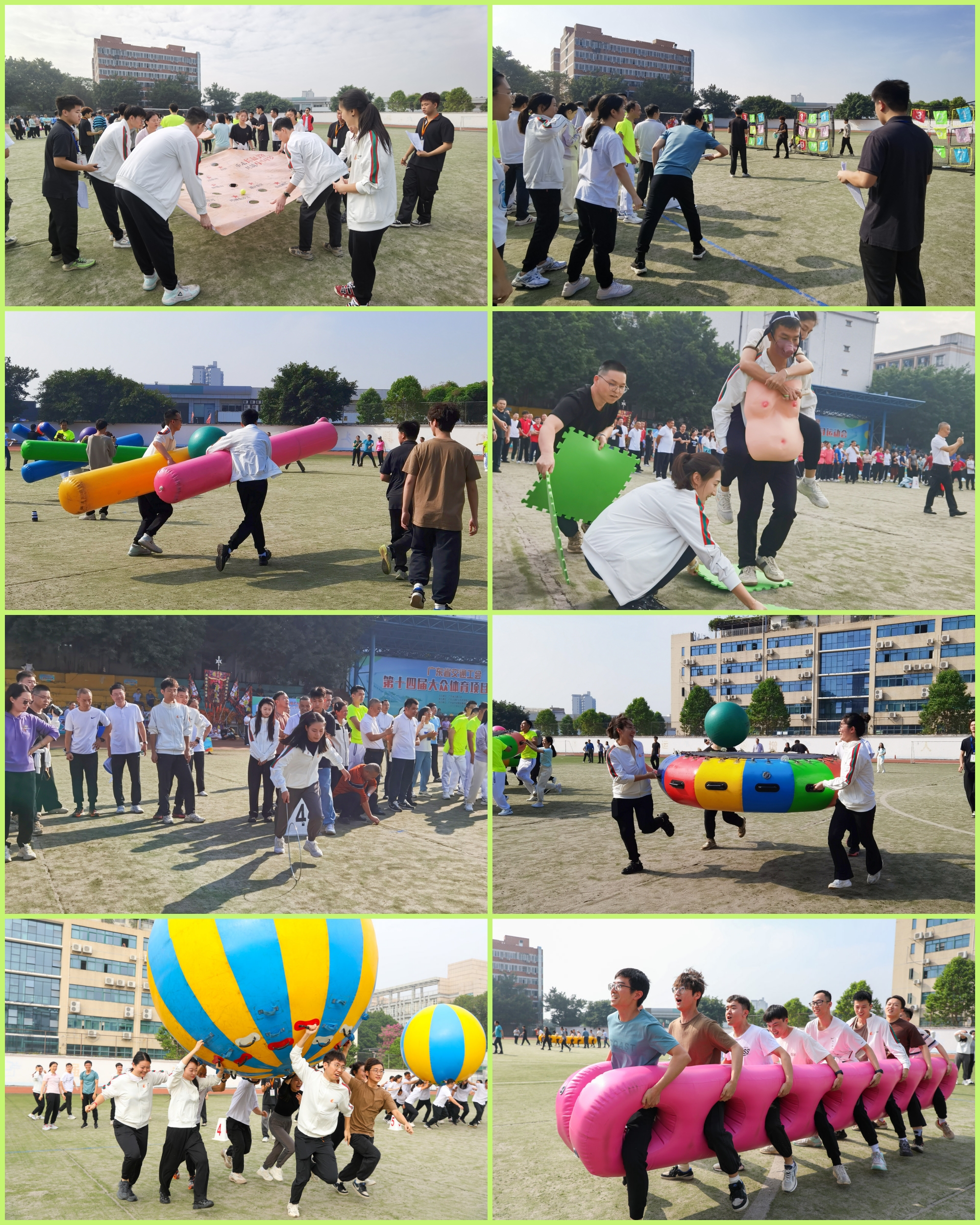 本次运动会共设有鸿运通天、大步流星、重走长征路、极限飞盘、超级接力、猪八戒背媳妇、滚铁环、雷霆战鼓8个比赛项目。这些项目集体力考验、团队合作和趣味娱乐于一体,既增进了员工之间的互动交流,也帮助员工释放了工作压力。