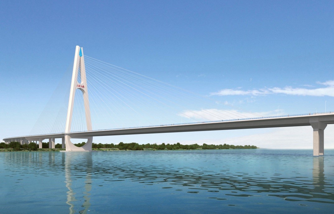 三水三桥是本项目的关键控制性工程。主桥采用混合梁独塔斜拉桥,为塔梁固结体系,跨径布置为(52+56+72+338)米,全长518米,桥面全宽45米;主梁采用混合梁,主跨为钢箱梁,边跨为混凝土梁,截面均采用整体式单箱三室箱形断面;主塔采用花瓶型,为普通钢筋混凝土结构,总高度(塔座顶至塔顶)为168米,桥面以上高141米。