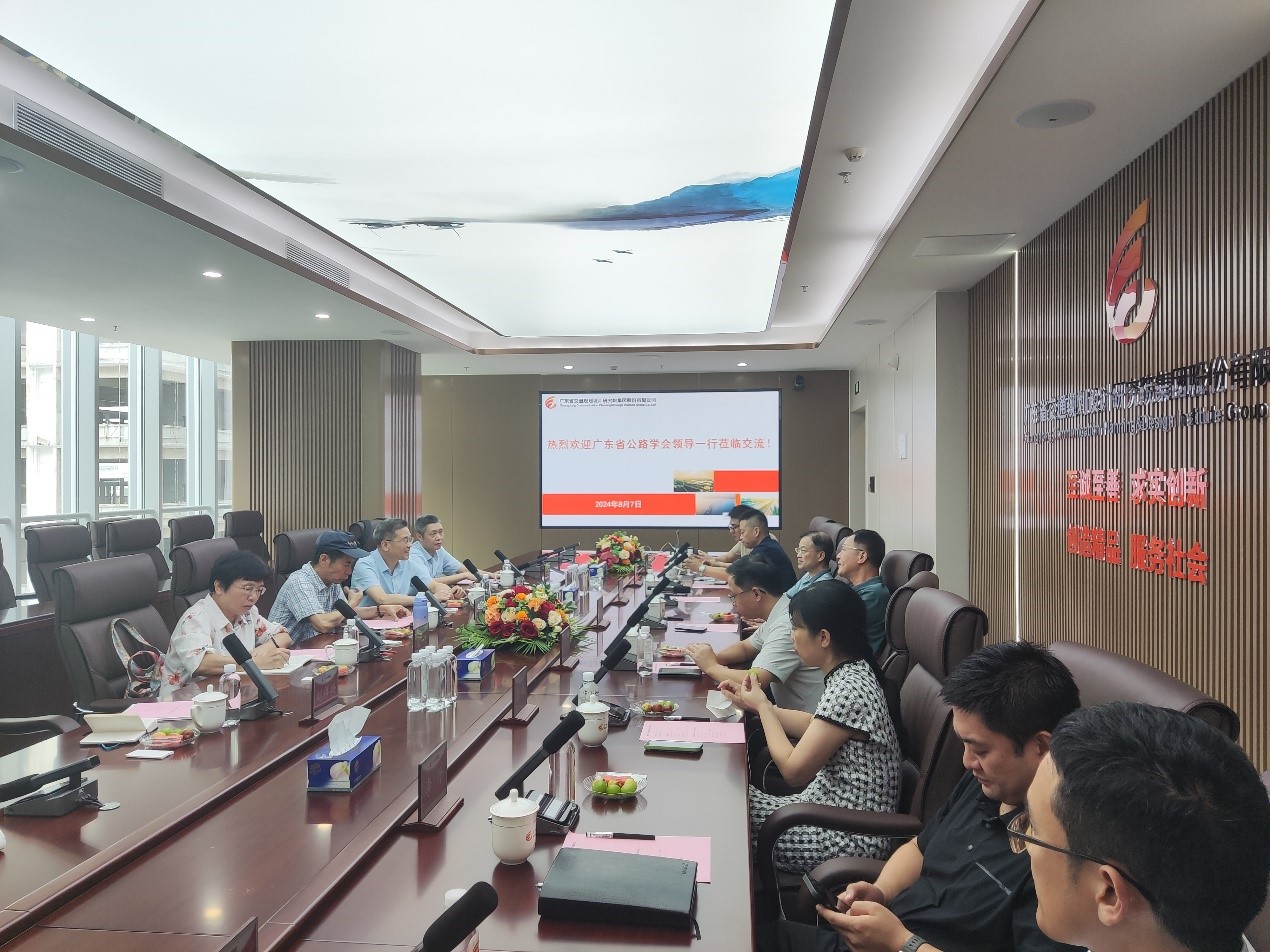 8月7日,广东省公路学会理事长洪显诚、专家委员会主任陈冠雄、秘书长王强一行莅临公司座谈交流。公司董事长李江山,副总经理蔡小杨、陈贤文,公司总经理助理、九域公司总经理朱青,科技质量部主任林敏,市场发展部主任邬晓辉,翔飞监理公司总经理李丹等参加了交流会。
