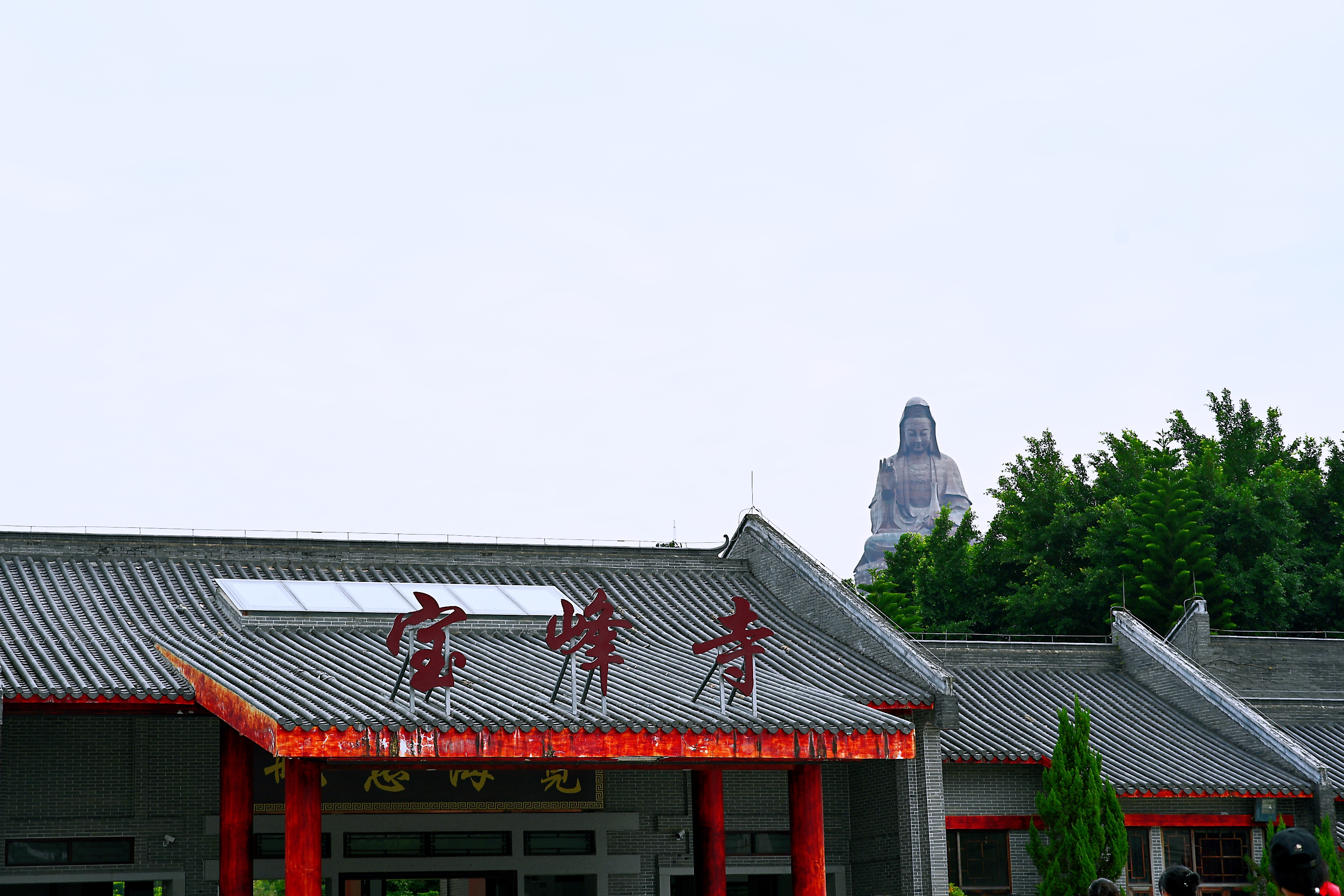 踏上宝峰寺青石台阶,抬眼望去,庄严宏伟的观音雕像赫然映入眼帘。大佛在阳光的映照下,仿佛萦绕着一股慈悲祥和之气。山峦环绕,层林尽染,与古寺飞檐斗拱、古朴建筑相映成趣,大佛恰似定海神针,让周遭更显宁静神圣。大家纷纷驻足,用手机定格震撼难忘的瞬间,脸上满是惊叹与欢喜。