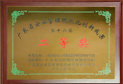 经广东省企业管理现代化成果评审委员会审定,由我院完成的《工程咨询企业人力资源动态管理体系的创新与实践》荣获第十六届广东省企业管理现代化创新成果二等奖(粤管审[2006]6号文),特此报喜。