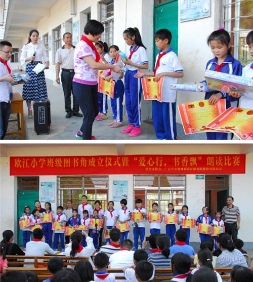 搭建一个“图书角”,分享一座“精神粮仓”——第二党支部党员同志们继续满怀着爱心和热情,践行他们服务山区留守儿童的创想。2017年5月5日,第二党支部党员同志们历经五小时车程,跨越三百里路程,到达河源龙川黄布镇欧江小学,走进山区校园,开展捐赠“爱心图书角”活动。这次活动中,第二党支部为欧江小学9个班级各创建了图书角,捐赠价值接近两万元。小小的图书角,装载的不仅是书籍和知识,更是支部党员同志们扶贫助困、捐资助学的爱心,以及他们对山区儿童健康成长的热切期盼。