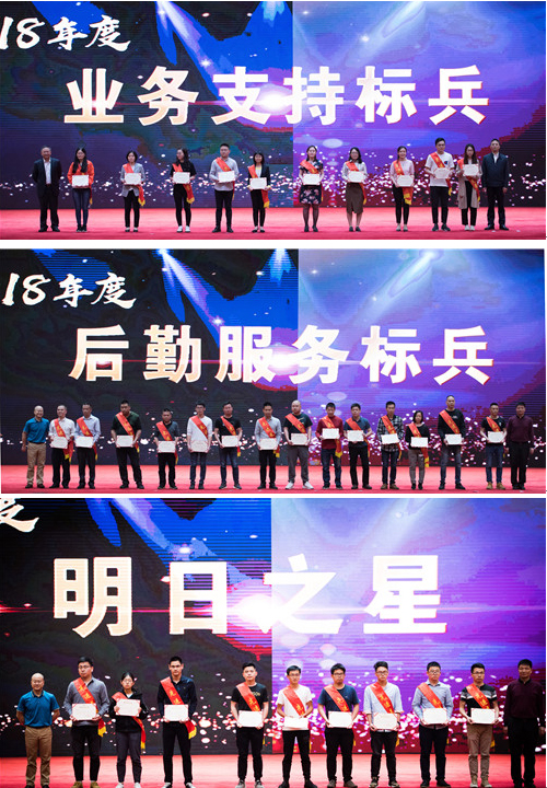 第二部分是对2018年度在生产经营、职能管理等各项工作中表现优秀的各类先进集体和个人进行了集中表彰。