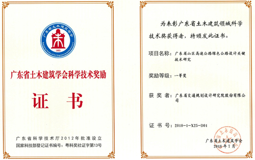 《广东省山区高速公路绿色公路设计关键技术研究》荣获一等奖,获奖人员:彭向荣、黄湛军、梁立农、陈新富、陈竞飞、梁志勇、李国安、温玉辉、万志勇、罗旭东、王强、孙向东;