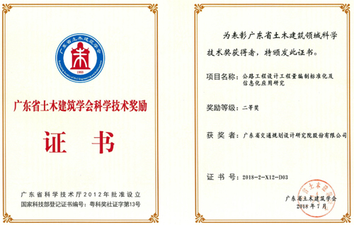 2018年广东省工程勘察设计行业协会科学技术奖: