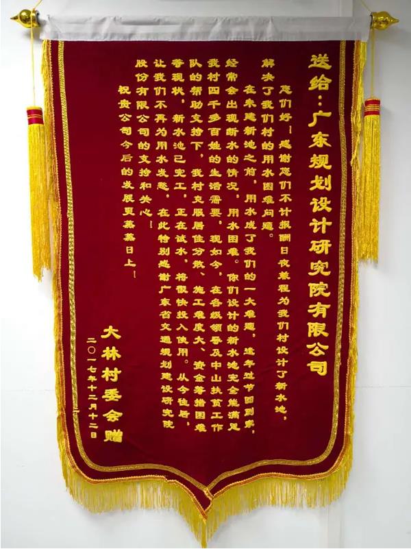为民服务显真情,收到锦旗受赞誉——无偿完成大林村新水池设计任务,为当地四千多名老百姓解决用水难的问题